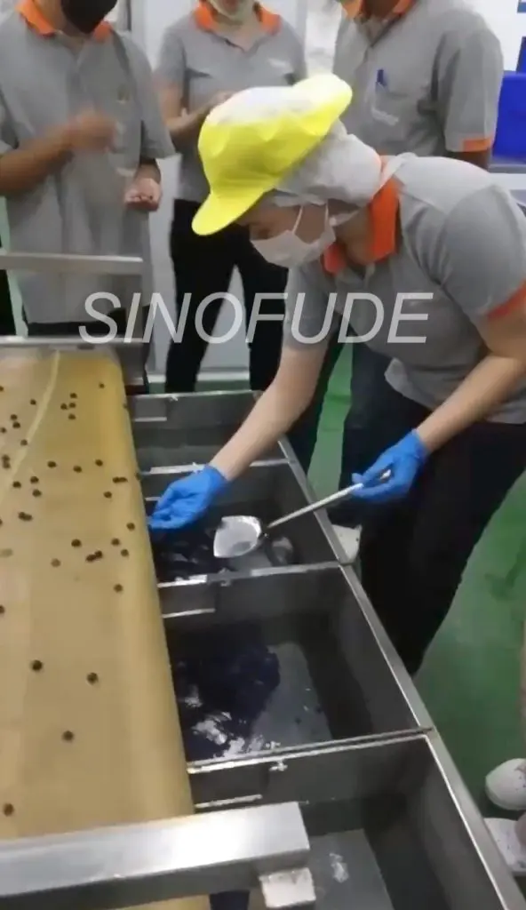 The production process of Popping Boba is a delicate and complex process. On the production line of Sinofude, the process includes the steps of cooking, depositing, forming, cleaning packaging, and sterilization.
