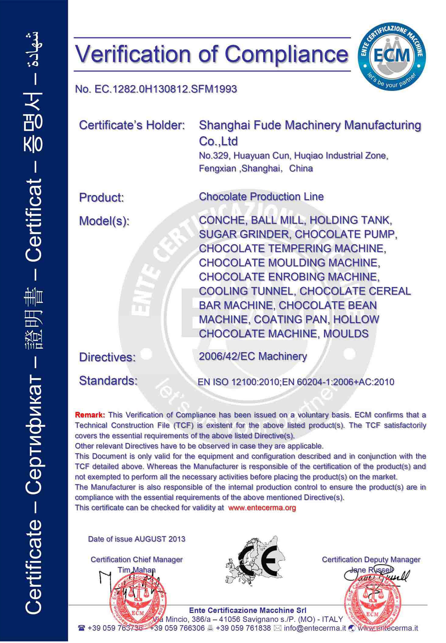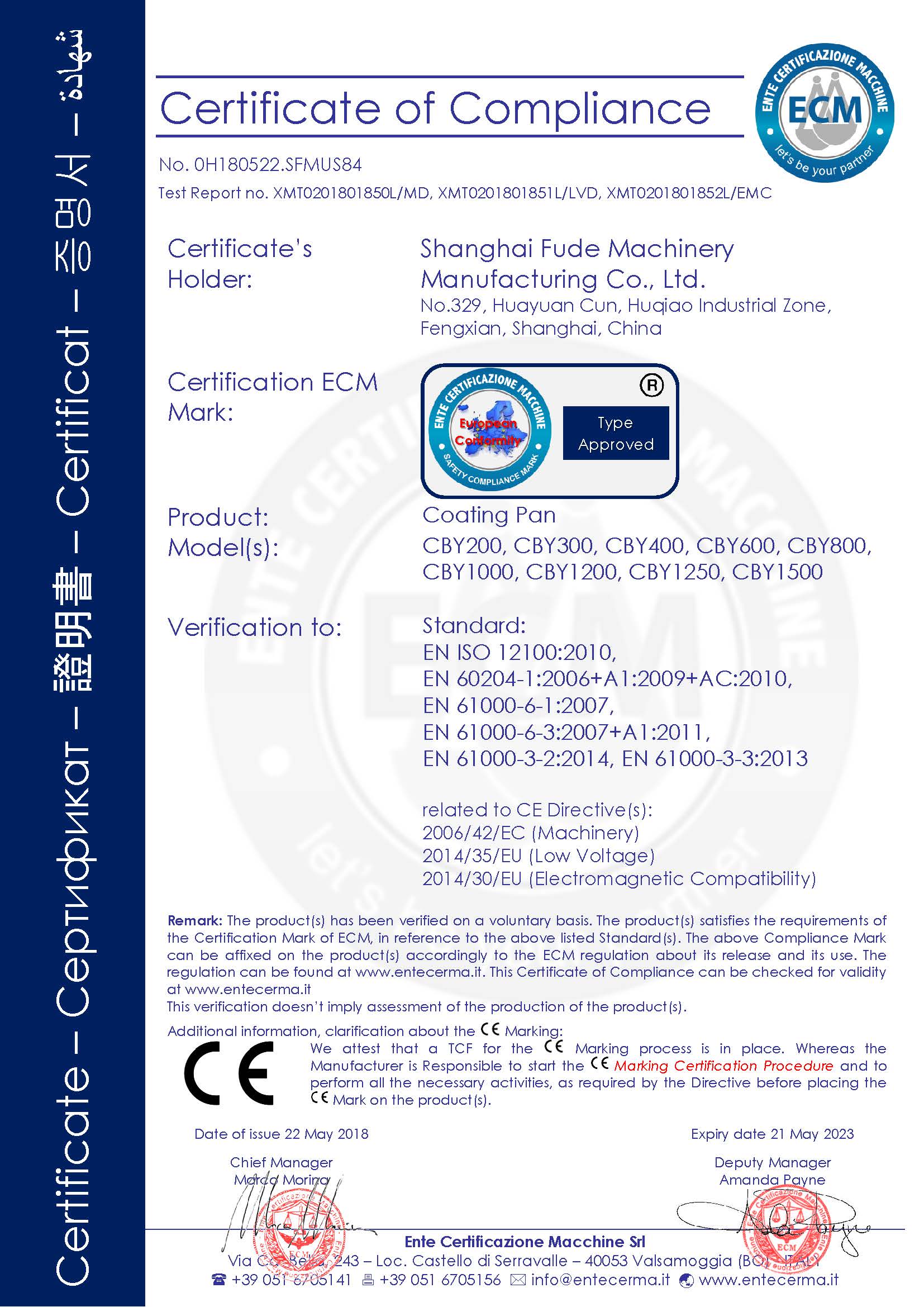 Certificate Machinery and Low Voltage Directives
