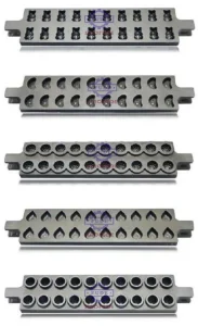 Molds can be metal with a non-stick coating or silicone rubber with either mechanical or air ejection. They are arranged in sections that can be easily removed for changing products, cleaning coating. Mold shape: Gummy bear, Bullet and cube shaped Gummy weight: Ranging from 1g to 15g Mold material: Teflon coated mould