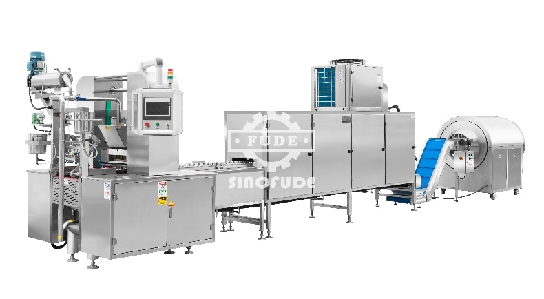 Sinofude CLM80 Automatic Gummy Production Equipment is a stand-alone system capable of full production duties.With speeds up to 30000 gummies per hour, it is perfect for small to medium production runs. This equipment can produce gummies in one or two colors.